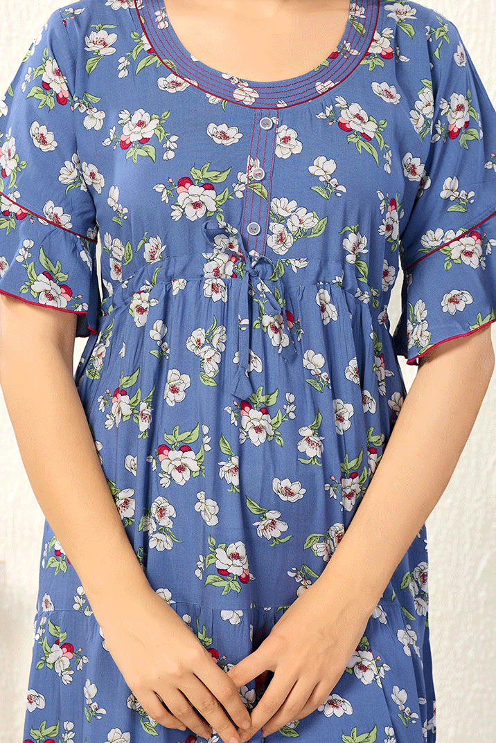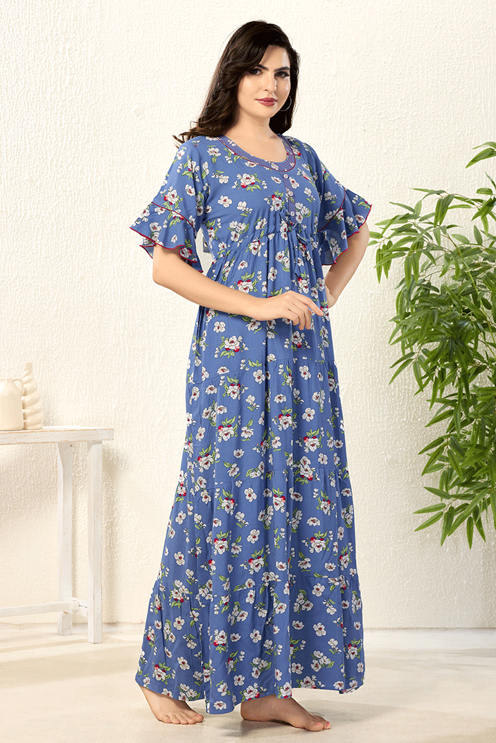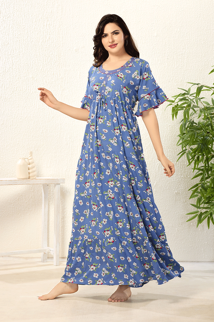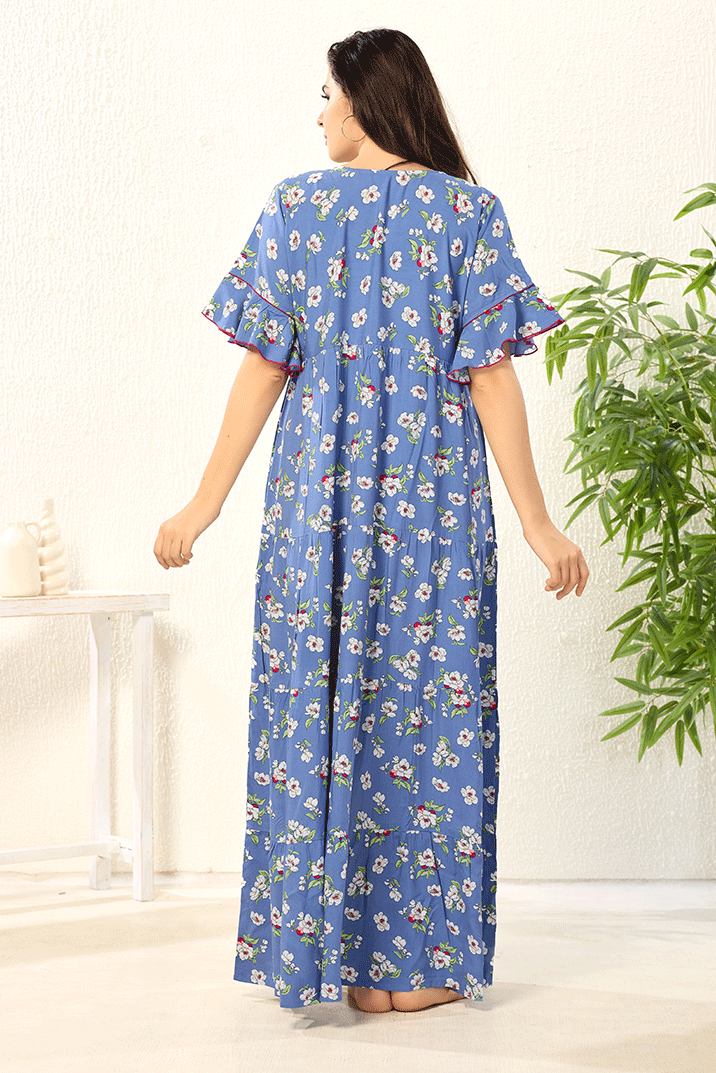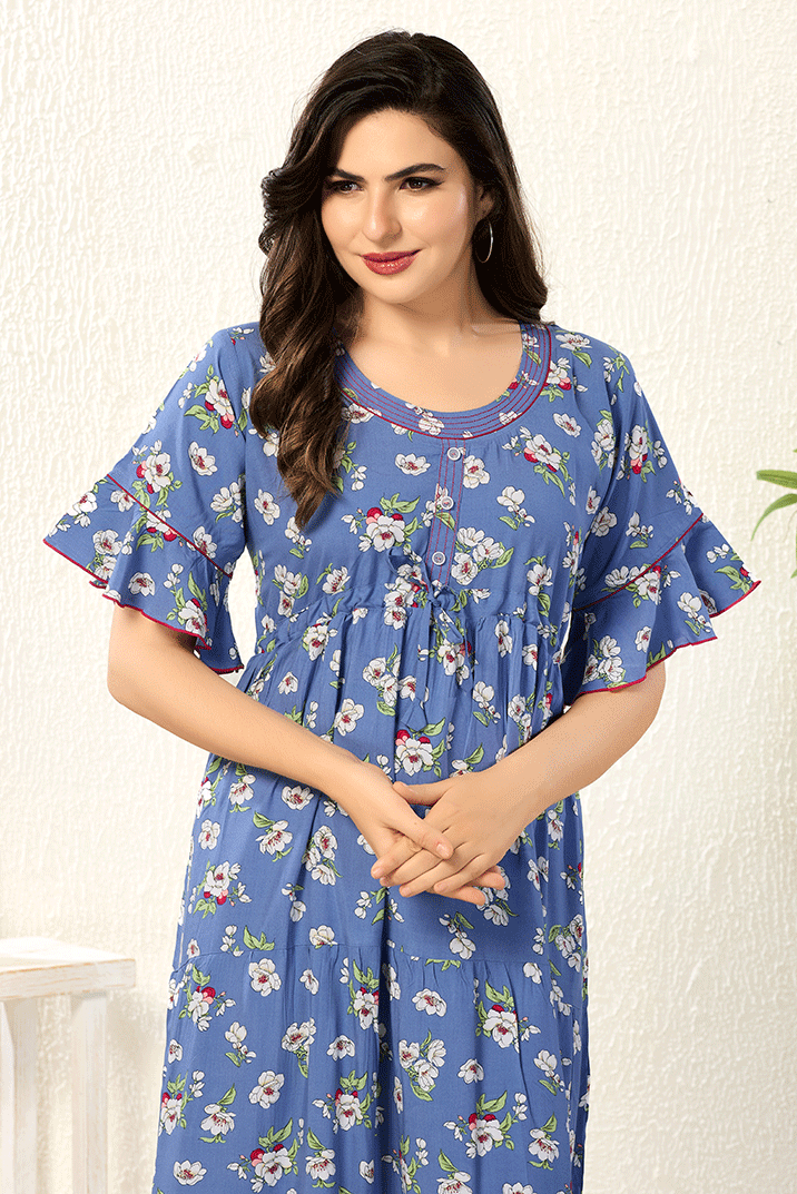 Bell Hands Floral Blue Floral Frock Nighty