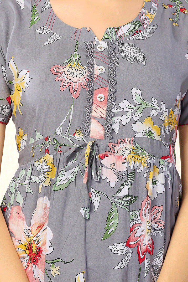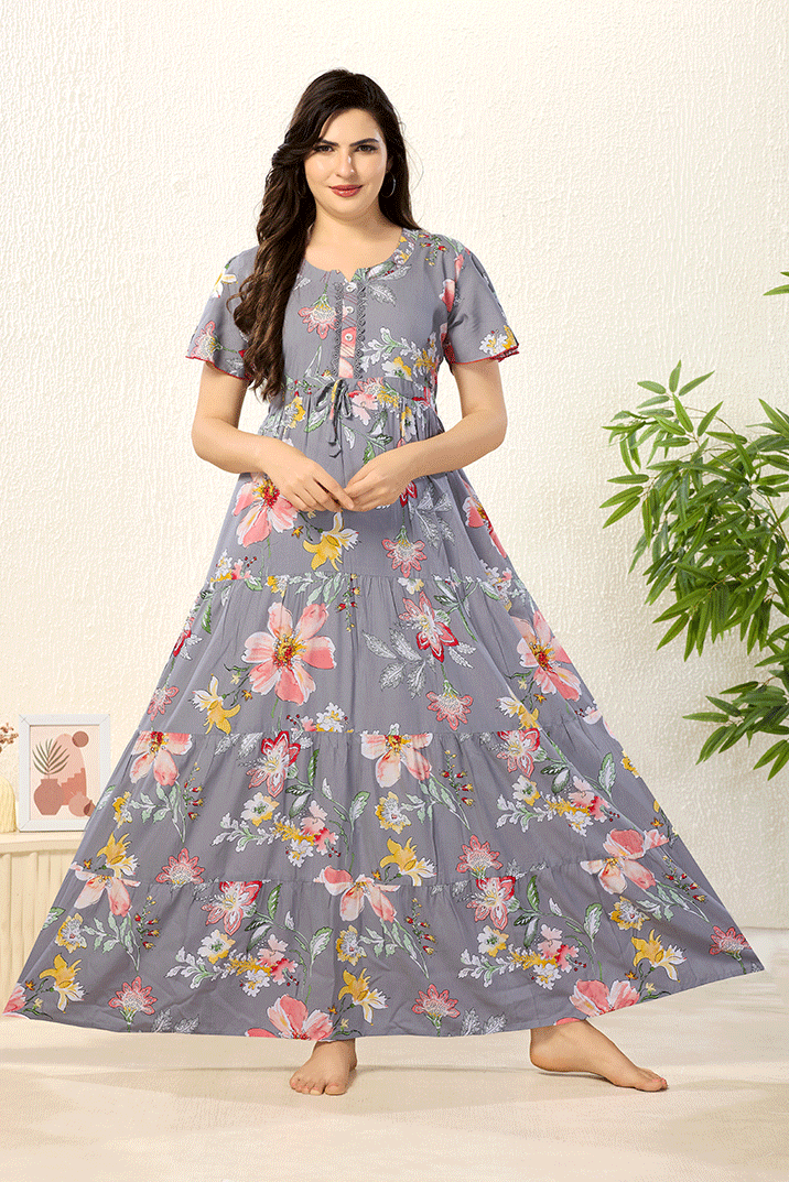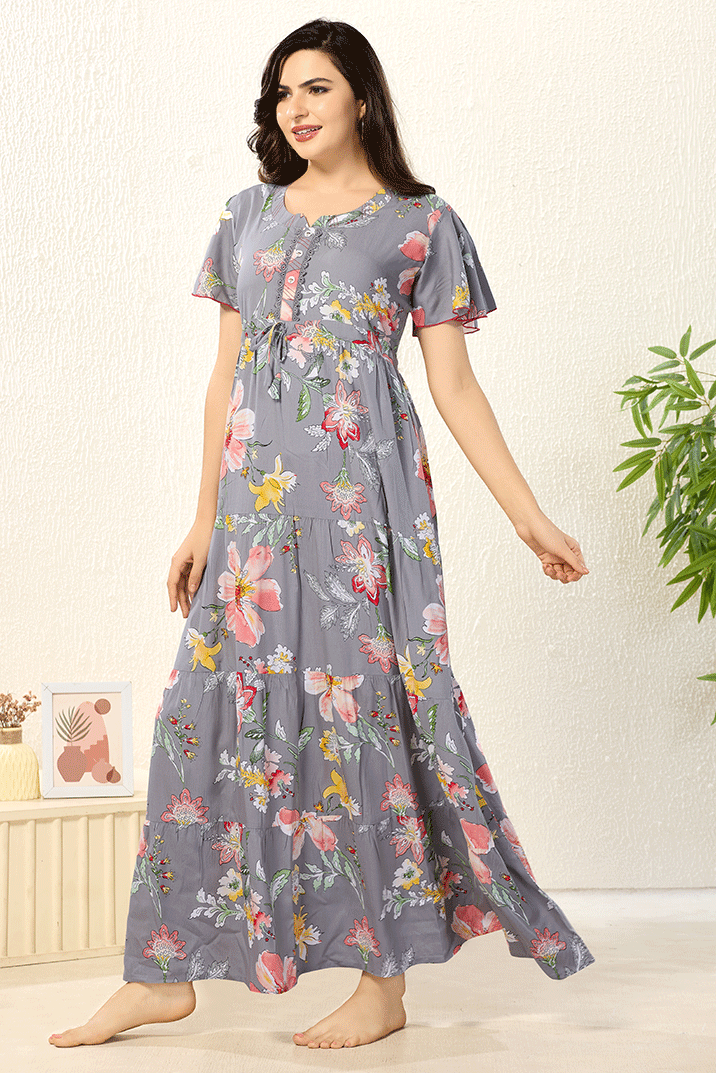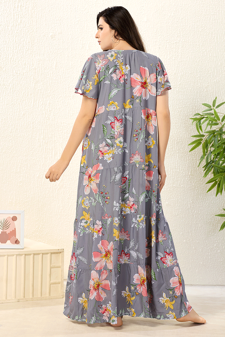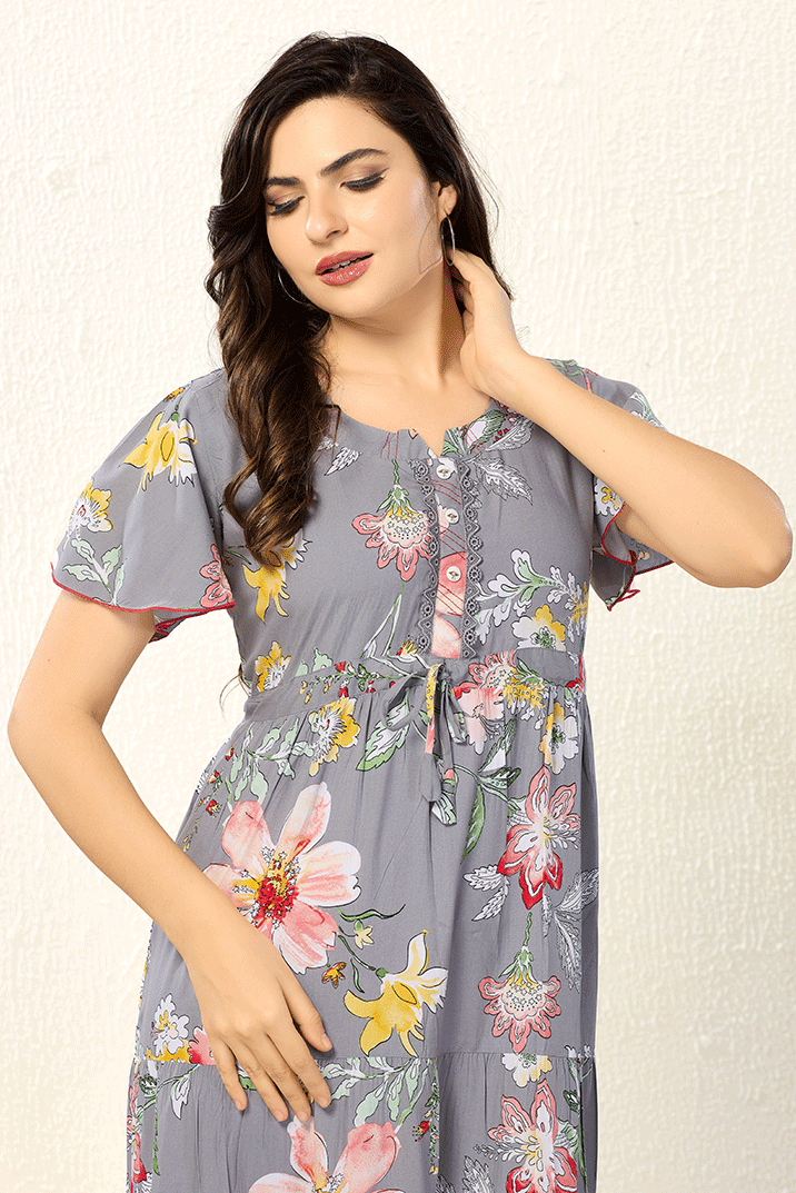 Butterfly Sleeves Grey Color Frock Style Nighty
