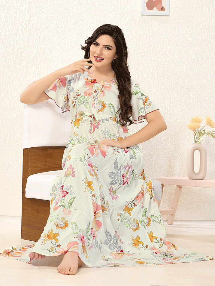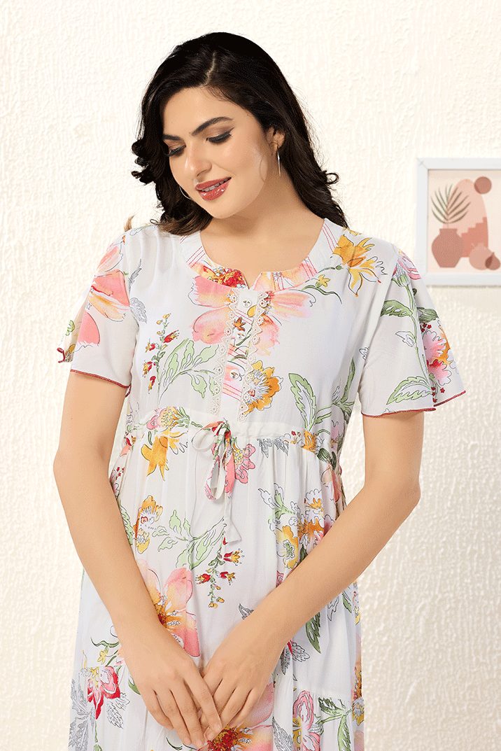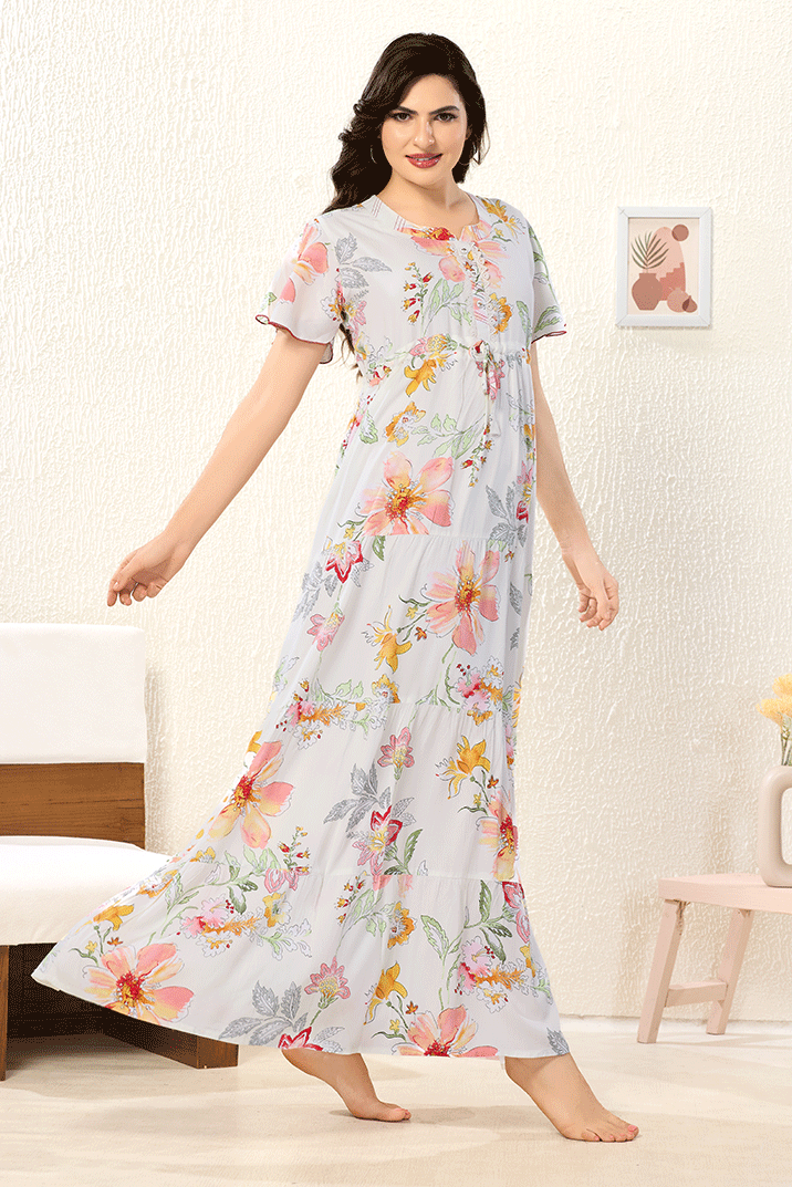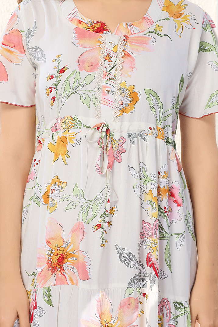 Half-White Frock Rayon Cotton Nighty