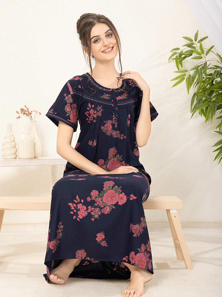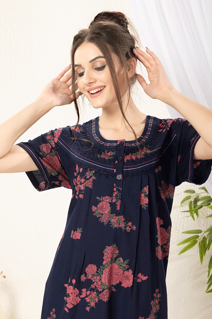 Navy Blue Soft Cotton Nighty